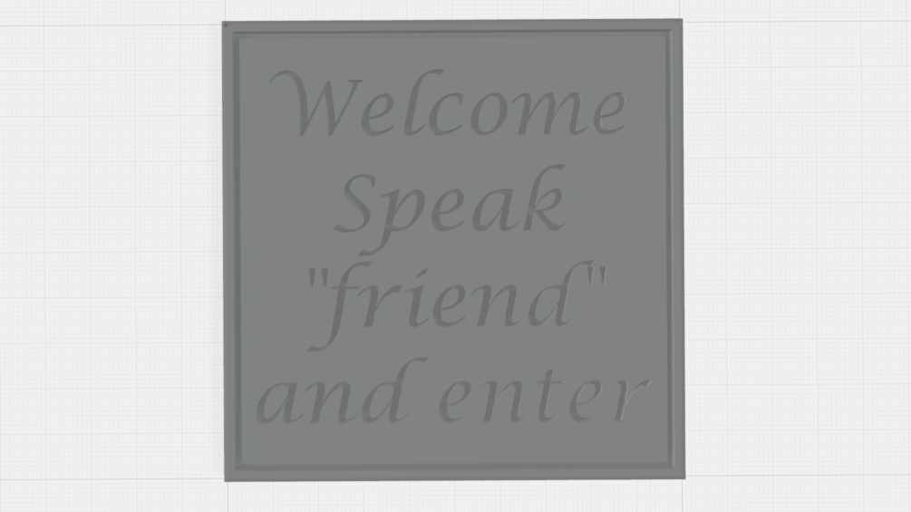 Welcome Sign with quote: Speak "friend" and enter. STL file
