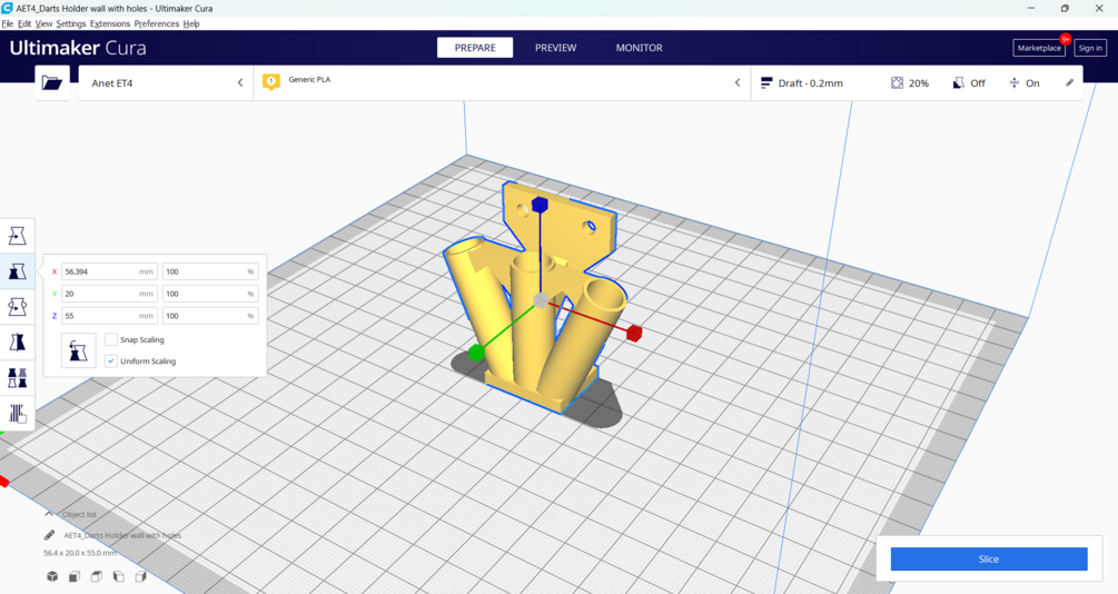 Darts holder wall stl files, 1x with holes, 1x without holes